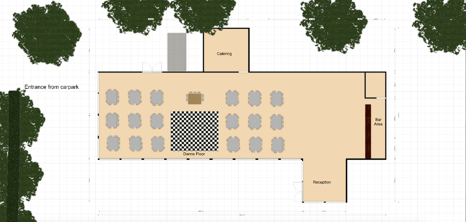 The siting of the marquee will be a huge factor in designing the layout. Where do the guests enter the venue?, in which direction are the views?, Where will the services operate from?, The list can go on, but more importantly, the design needs to meet your own specific wants so that the reception is unique for your wedding day.